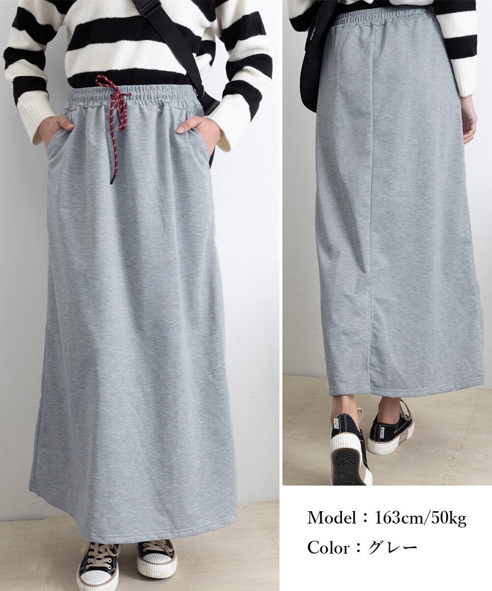 薄手スカート レディース ウエストゴム ストレートスカート ハイウエスト ポケット付き 体型カバー 動きやすいボトムス