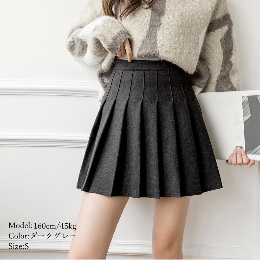 生地は見ためウール調で、裏地は柔らかくてさらりとした素材で着心地も快適のミニプリーツスカート
